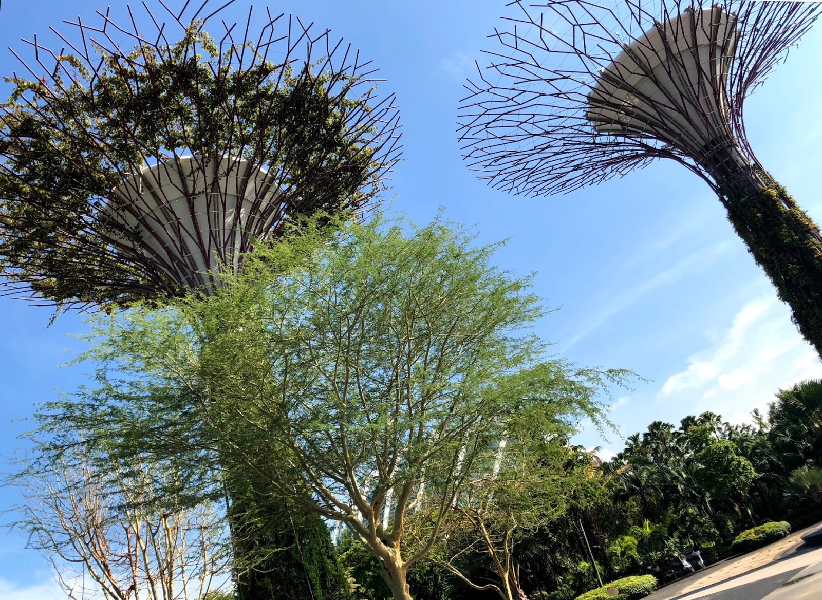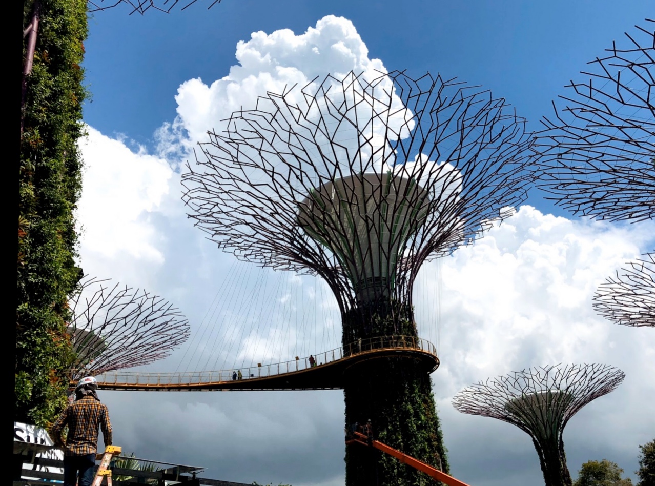 二つのドームを見終え、外に出ると、お昼近くになっていました。一番暑い時間でしたが2本の巨大ツリーをつなぐ吊り橋?、空中遊歩道に行ってから植物園を後にしました。