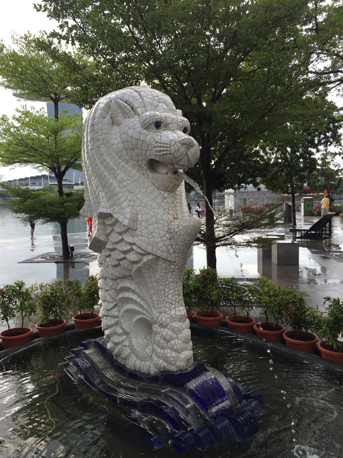 広場に到着した頃には、雨も止んでいて、無事マーライオンと会えました!朝、早い時間でしたが、すでに沢山の観光客で、ベストショットの写真を撮るのもなかなか大変でした。マーライオンの後ろには一回り小さい小ライオンもありましたが、こちらはほとんどの人が素通りです。こちらはこちらで可愛いかったですが・・・