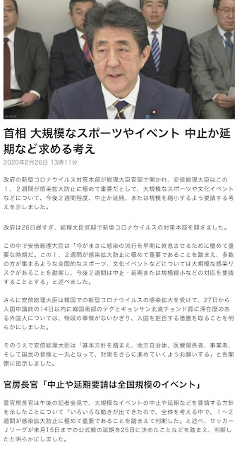 その電話で安倍総理の会見を知りました。 全国のイベントの自粛要請です。