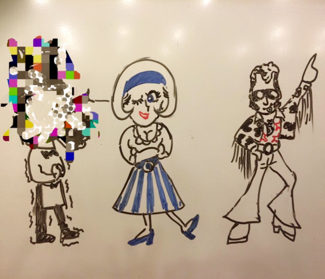 昨日に引き続き、ベッペ画伯の絵をもう一枚!「リタ」の登場人物のイメージ図です。